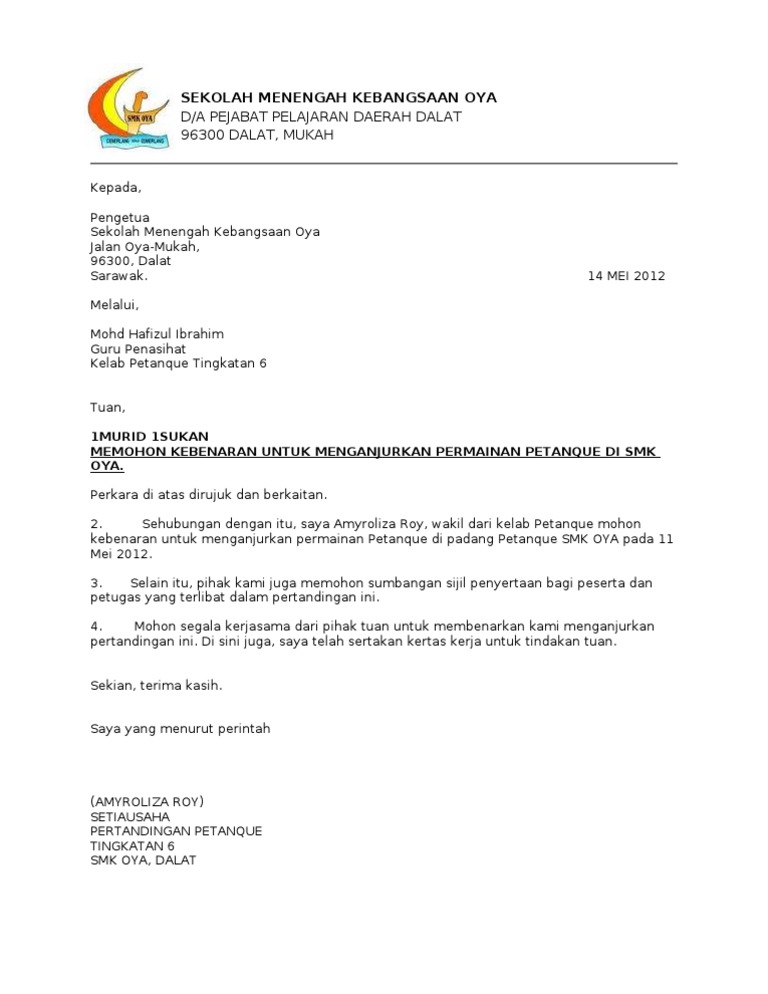 Contoh Surat Permohonan Kebenaran Meminjam Item Barang Alat Pdf